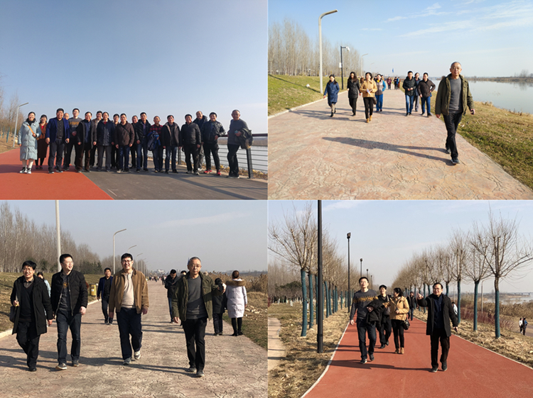 当日下午风和日丽、空气清新、温度宜人。下午2:00大家从渭河湿地公园“若水台”石壁前出发,同事们褪去了平日里工作的严肃紧张,沐浴着冬日暖阳,一边行走一边交谈,一路欣赏着渭河景观,感受着渭河滩近年来因政府投巨资打造生态湿地公园带来的巨大变化。河中成群黑鸭、芦苇,岸边的水车、亭台,堤上的石碑、腊梅,还有间隔分布运动场地、设施,时不时地引来大家驻足留影。不少同事带来了家属和孩子,为此次活动增添了许多乐趣与活力。大约3点钟,大部队行走至渭河1号坝后折返,健步走活动在大家的欢声笑语中结束。