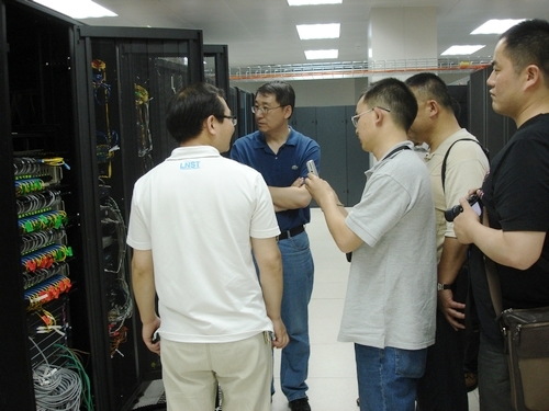 座谈会上,网络与教育技术中心李力主任介绍了我校数字校园建设情况、校园安防(视频监控)系统建设情况以及下一步发展规划设想,着重介绍了数字校园建设中的建设经验和需要注意的问题,云南师范大学同行对此表示了浓厚的兴趣。双方就数字校园建设、校园一卡通、学生上网收费、网站管理、校园安防(视频监控)等问题进行了交流,并就校园网运行管理、服务器虚拟化应用、校园无线网的建设等情况就行了深入讨论。会后,客人们参观了中心机房和安防监控中心。