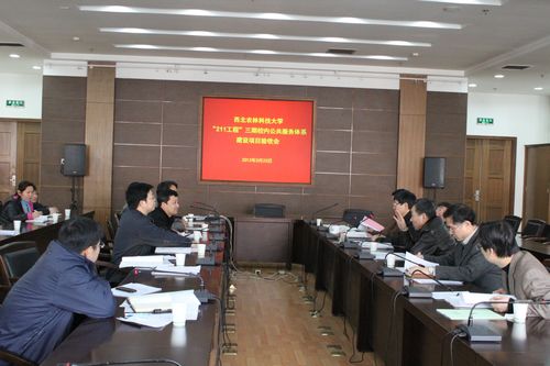 3月23日上午,受教育部委托,我校组织有关专家对“211工程”三期校内公共服务体系建设项目进行验收。由清华大学程建钢教授任组长,赵忠常务副校长、侯曦副校长、张雅林副校长、吴普特副校长、徐养福副书记等组成的专家组对我校校内公共服务体系三个子项目进行了全面验收。各项目单位负责人,项目负责人及相关代表参加了验收汇报会。
