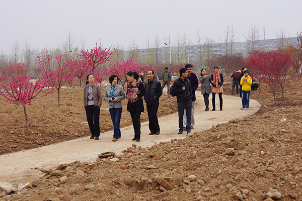 下午4:00,大家走出办公室,一改平日严肃紧张的状态,边走边聊,轻松愉快,近距离的观赏自己办公楼周边的美景。在海棠苑里赏花、留影,在经济树木园穿行,辨识核桃、枣子、柿子、山楂树,分辨梨花、桃花、杏花、苹果花,憧憬秋日里果实满枝头的喜悦。最后重点游览了正在施工中的湿地公园。公园轮廓、湖面、凉亭、园中小道已经修成,大部分花木已载上,虽未竣工,但已能感受到她的大气、高雅和美丽。在园中流连徜徉,远观周围在建的农科楼、教工周转房和自己未来新家的人才公寓,感受网教中心搬入数字化楼3年来周边的巨大变化,喜悦、自豪之情溢于言表。