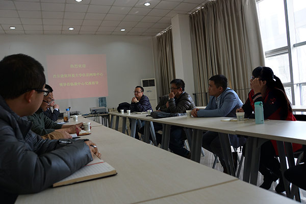 4月2日下午,西安建筑科技大学信息网络中心、教育技术中心副处长窦浩一行5人来我网络与教育技术中心参观交流,双方就网络与信息安全、数据中心安全、现有站群与新媒体(如微信等)连通、中心发展等问题进行了座谈。座谈会上,我中心王西军副主任就到访客人关心的网站安全、应用系统安全的制度建设作了介绍;信息部负责人介绍了我中心与数据安全相关的svc存储系统、云平台系统、虚拟化桌面系统;网络部负责人向客人介绍了网络运维中的一些经验。西安建筑科技大学同行分享了他们调研中的心得和建设规划,并对现在信息系统运行中运行中遇到的问题和困难进行了深入的探讨。