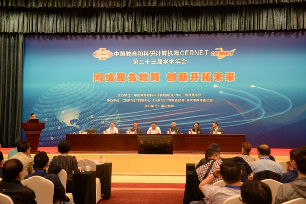 2016年10月25日,中国教育和科研计算机网cernet第二十三届学术年会暨会员代表大会在重庆开幕。本次大会以“乘‘互联网 ’的浪潮,推进教育信息化的创新”为主题,中国工程院院士、重庆大学校长周绪红,教育部科技司司长王延觉,中央网信办网络安全协调局副局长胡啸,中国工程院院士、cernet专家委员会主任吴建平,部分高校领导以及来自全国各省市教育厅局、cernet高校会员单位代表、厂商代表1200余人参会。我校网络教育与技术中心主任李力参会。