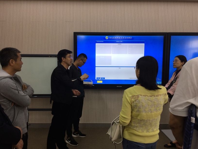 6月8日,西安交通大学、西北政法大学教学管理人员,前来我校考察智慧教室建设情况。中心主任韩苏建、副主任郭向平陪同参观。