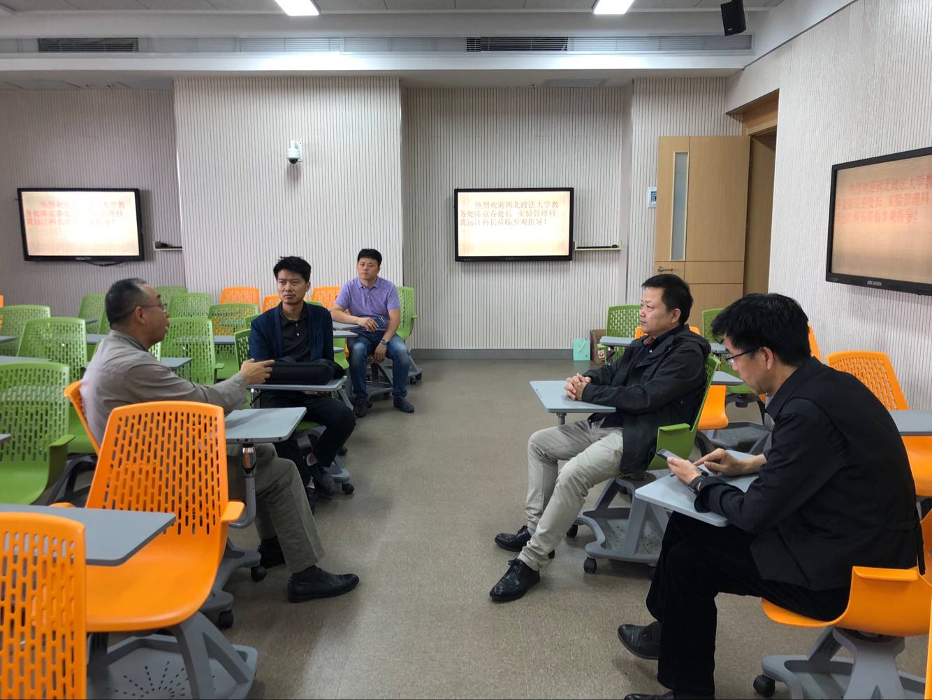 考察组参观了我校新建的14间智慧教室,韩苏建主任就我校智慧教室建设情况进行了详细介绍,双方就我校智慧教室的规划与设计、教室的规模及排课情况、教室信息化建设方案、管理服务保障等方面工作进行了深入交流。