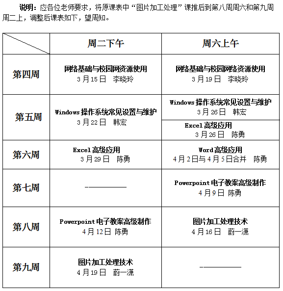 2011年第一期教师信息技术培训课表(新)-2024欧洲杯平台