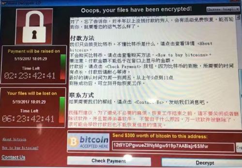 接教育网网络安全工作组通知,近期国内外爆发了基于windows平台的wannacry/wcry勒索蠕虫病毒感染事件,主机内重要文件被加密,并显示类似下图所示的勒索界面: